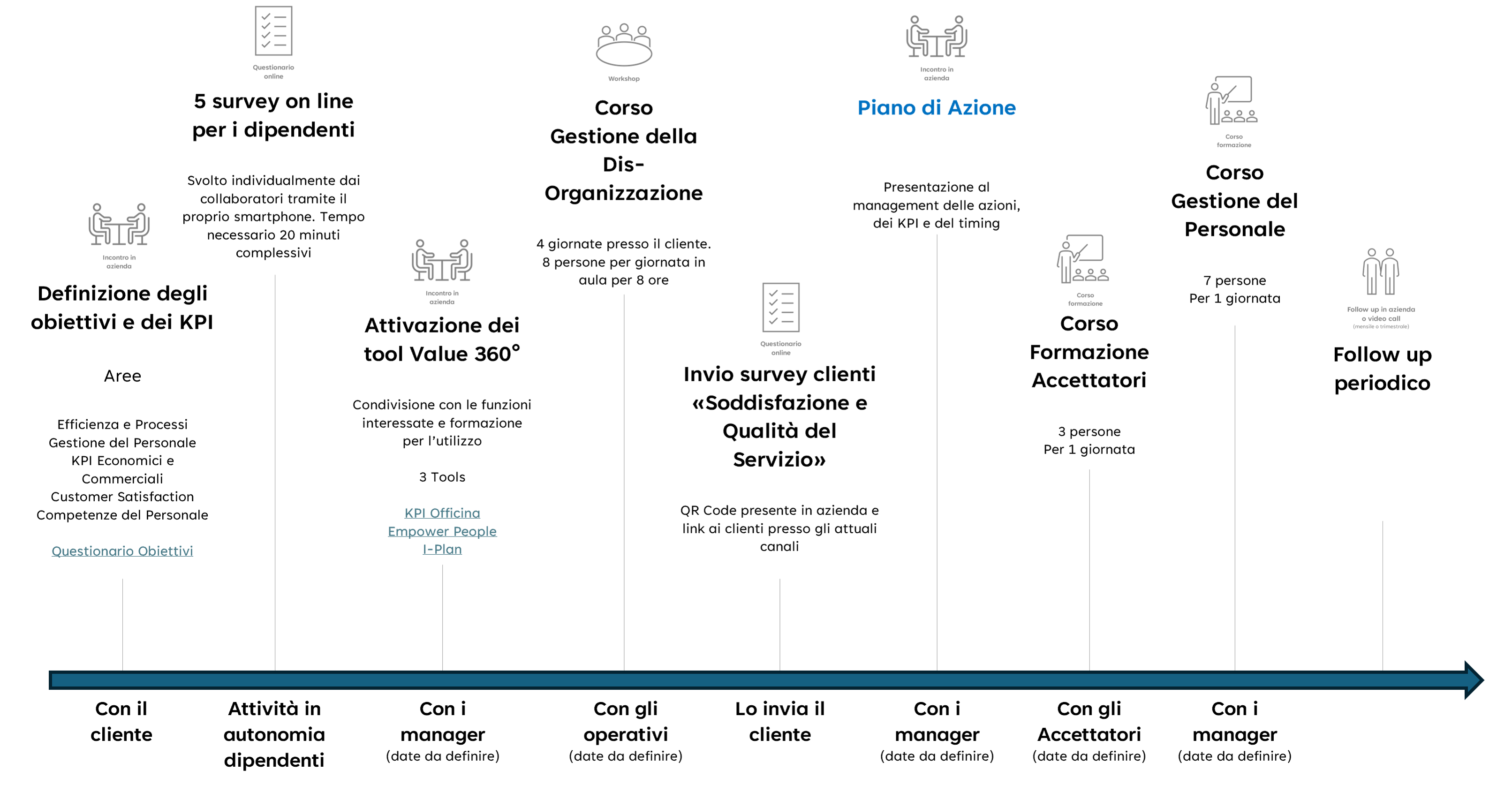 Questa parte interesserà sia il personale operativo che il management ed i clienti. Ecco le attività di formazione e consulenza specifiche: